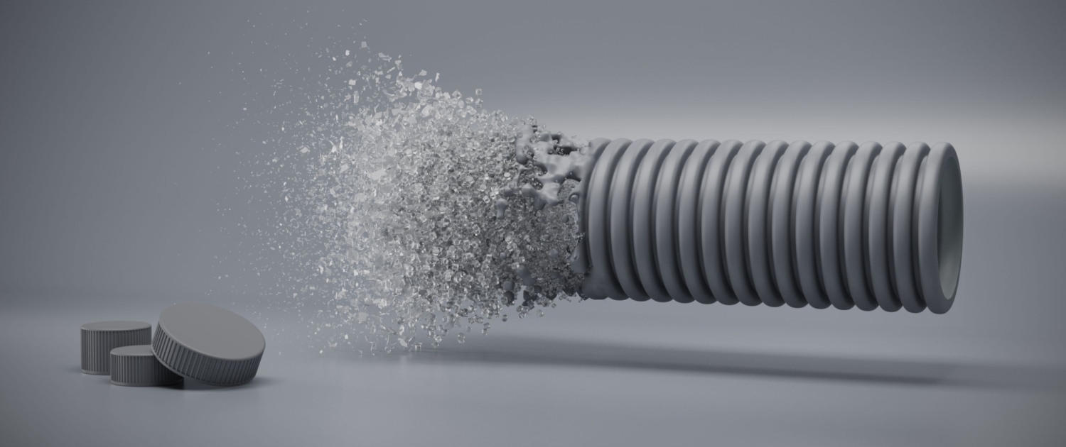 Lo strato esterno dei nuovi tubi cilindrici è costituito da una variante in PE ricavata da tappi di bottiglia in materiale riciclato. In conformità alle direttive dell’UE, per i materiali riciclati post-consumo (PCR) non vengono utilizzati scarti di produzione. Nonostante la percentuale di PCR, i tubi cilindrici sono inodori e si distinguono per la colorazione in grigio scuro. Lo strato interno liscio del tubo è ancora realizzato interamente in materiale vergine, con additivi antibatterici e antistatici.